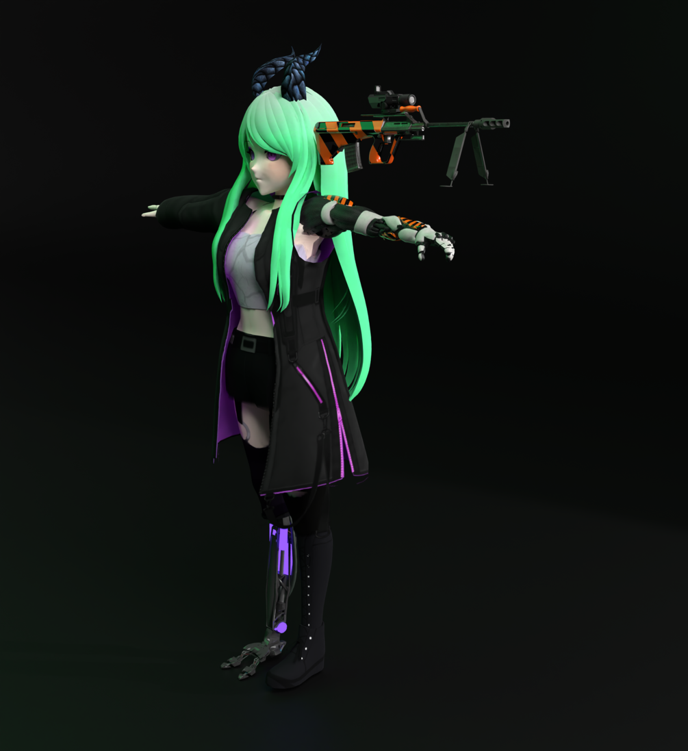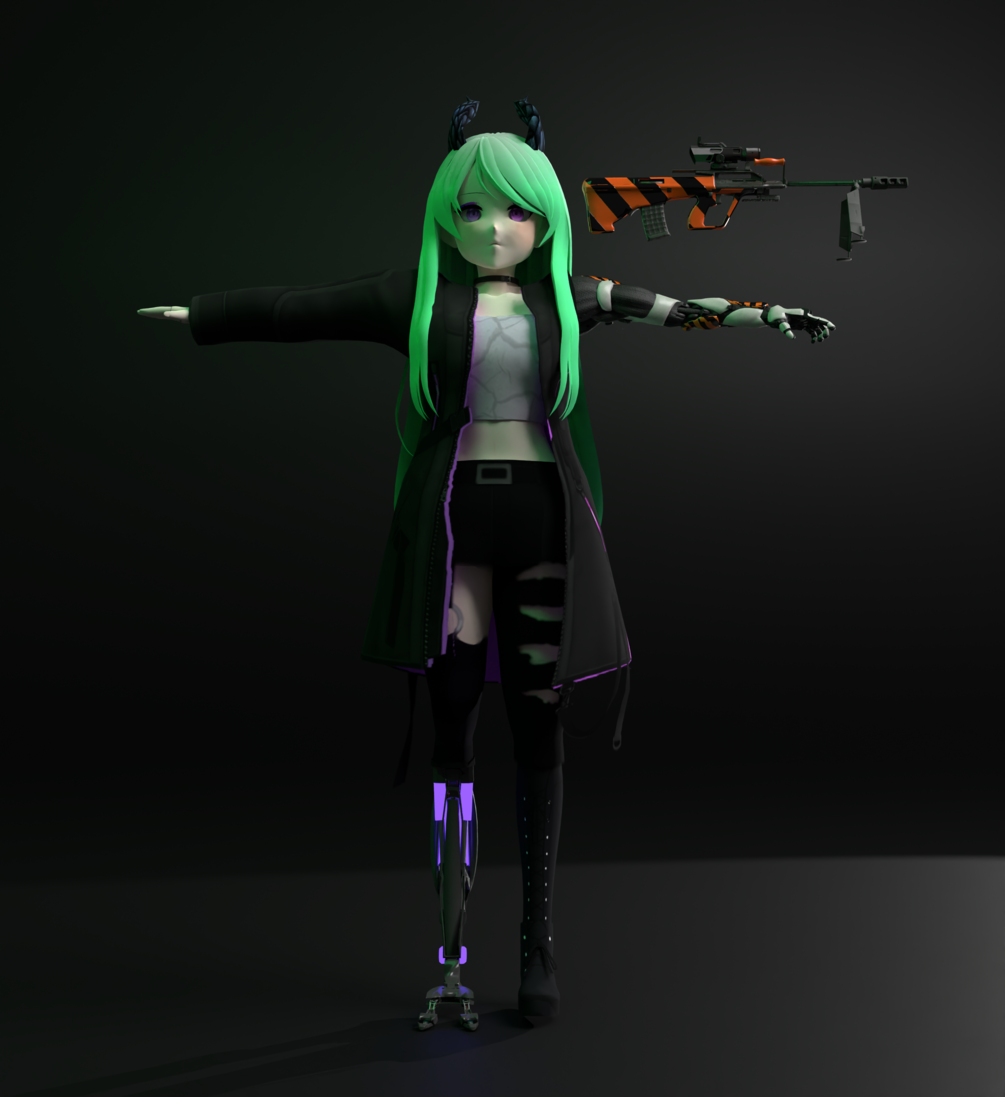 Here is complete vrchat avatar with one hand mechanical and one leg